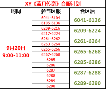 XY《蓝月传奇》9月20日合区公告