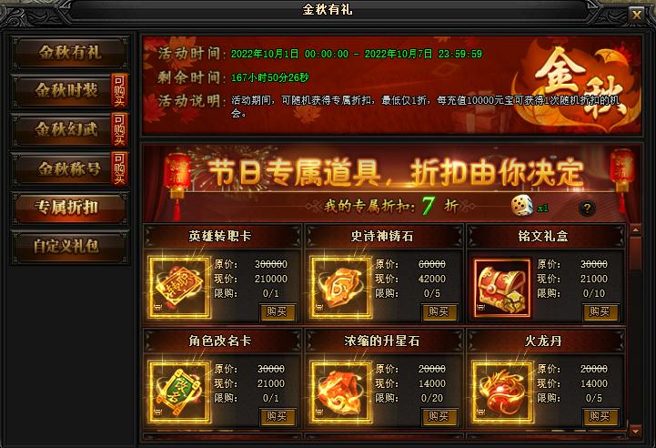 1. 新增“金秋七天乐”活动