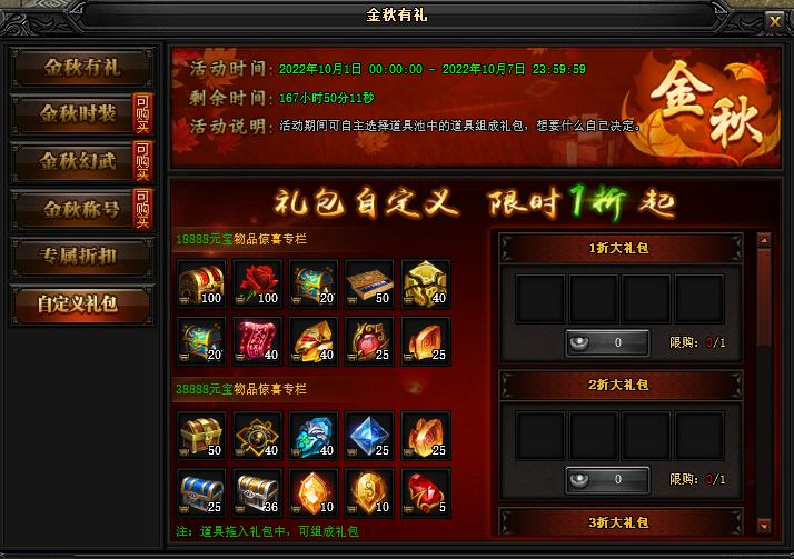 4)自定义礼包--活动期间可自主选择道具池中的道具组成礼包,想要什么随心决定